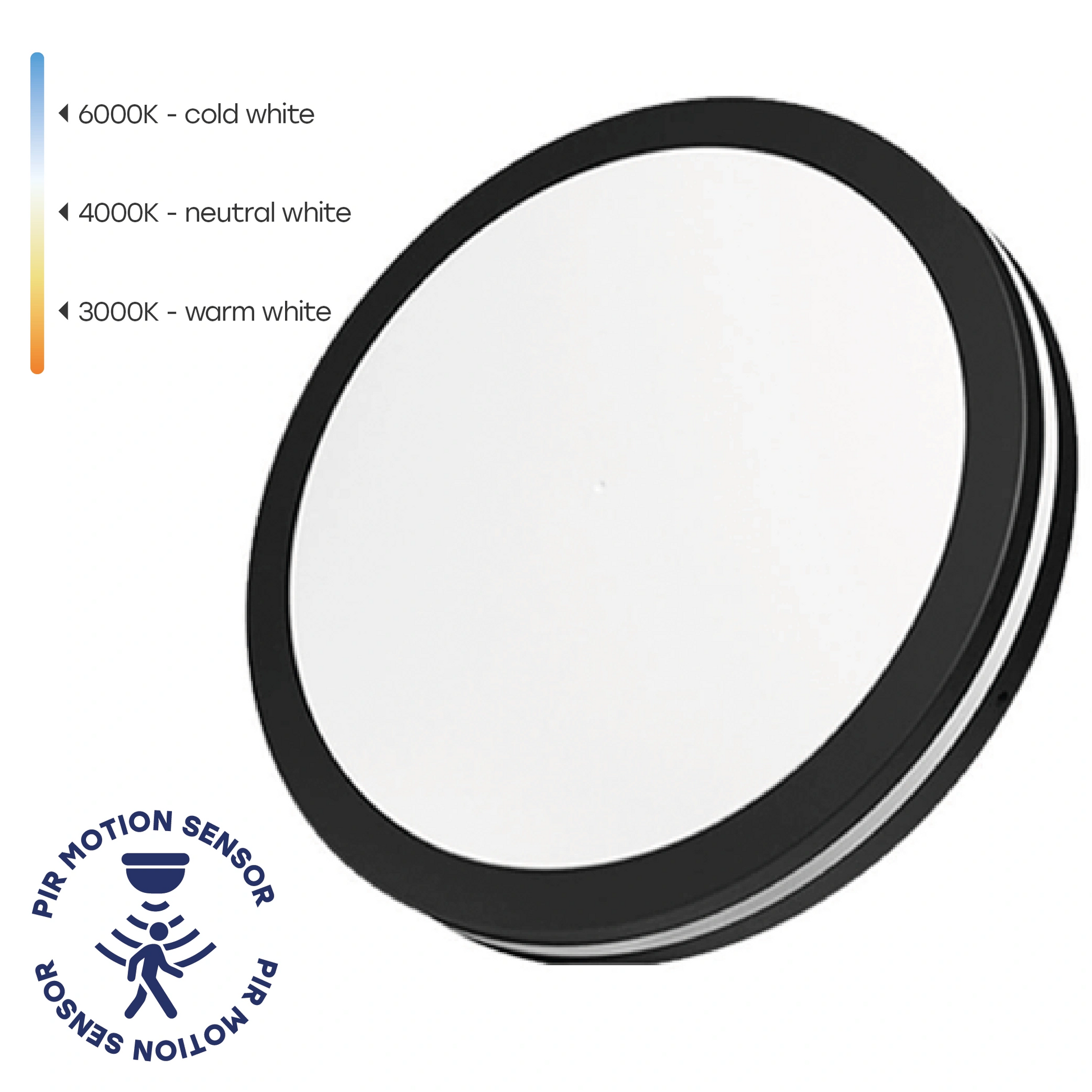 LED-plafond med rörelsesensor | Ø23cm | 20W | 3CCT | 2400lm | IP65 | svart