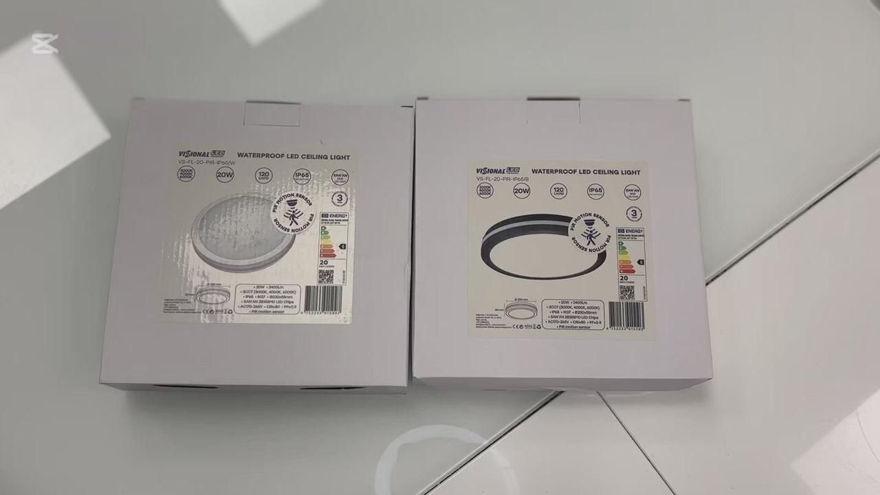 LED-plafond med rörelsesensor | Ø23cm | 20W | 3CCT | 2400lm | IP65 | vit
