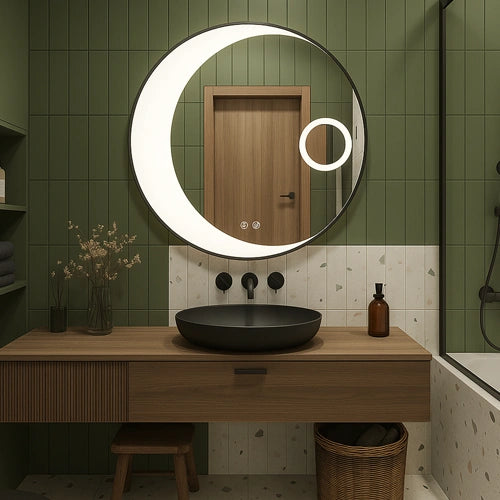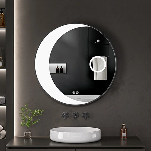 LUNARIA | Spegel med LED-belysning, värme med imskyddsfunktion och förstoringsglas | Ø80cm